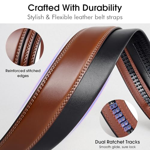 Ratchet Belts for Men- 2-Pack Men‘s Ratchet Adjustable Click Slide Belts for Dress Casual 1 3/8" Leather Belt Gift 6