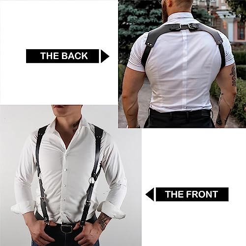 • 💕[Adjustable Design] Men's leather punk style braces shoulder girth straps. Designed with adjustable snap straps, There are many adjustment holes on the strap, and the tightness can be adjusted freely,suitable for most people.