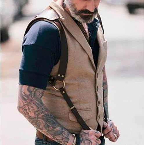 More information about Men's Leather Body Chest Harness Suspenders Adjustable Buckle Shoulder Armors Straps Punk Black Belt Club Party Rave Costumes