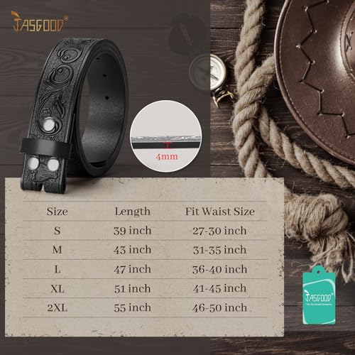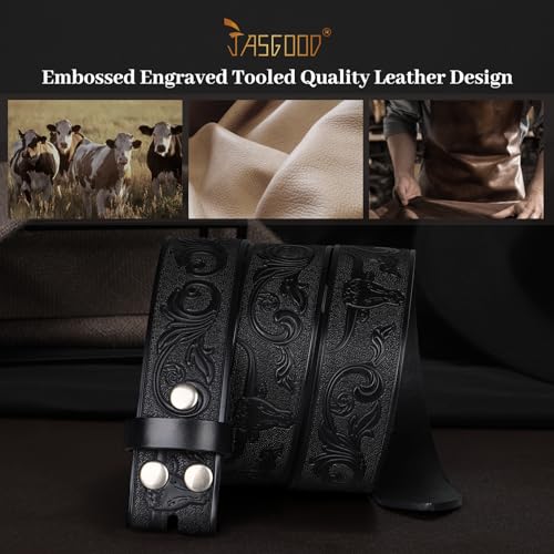 HOT ! JASGOOD Western Leather Belt Strap for Men Engraved Cowboy Belt Strap without Buckle 1.5'' Wide Long Horn Bull Western Belt