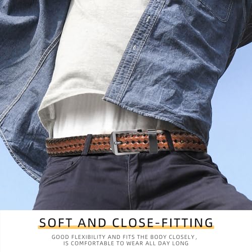 Mens Braided Leather Belt Everyday Casual Woven Belts for Men Fit Casual Golf Pants Jeans 7
