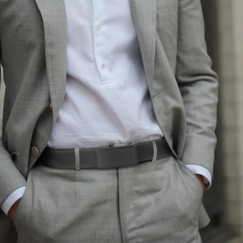 Men's Black Leather Ratchet Belt, 1.25 inch Casual Dress Belt for Jeans with Adjustable Automatic Slide Buckle 7