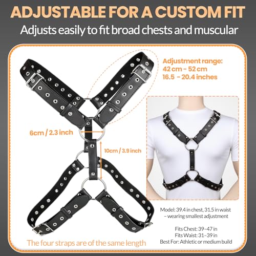 More information about Men's PU Leather Chest Harness Belt, Adjustable Body Harness Belt for Men, Male Punk Chest Shoulder Harness for Party and Cosplay X024
