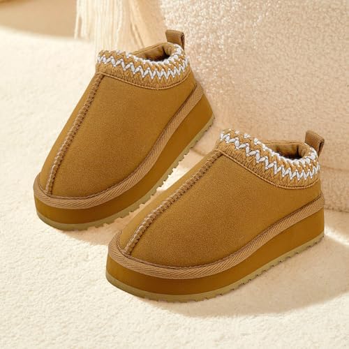 Girls Boys Snow Boots Kids Faux Fur Lined Winter Snow Fuzzy Classic Platform Fashion Anti-Slip Warm Winter Slip On Memory Foam Comfort Kid's Ankle Boot 6