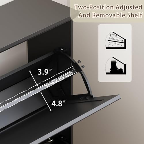 • Adjustable Double-Layer Drawers with Open Top Shelf: Each main drawer includes two compartments with adjustable or removable dividers to fit shoes of different heights such as heels, boots, or trainers; the top surface works great for placing keys, décor, wallets, or daily essentials.