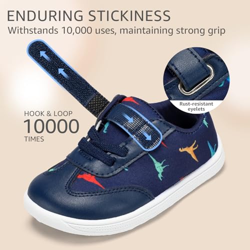 • [ Easy On & Off ]: Our toddler walking shoes are designed with elastic straps and the hook & loop closures, making them easy to put on and off as well as allowing for dynamic wrapping during daily activities, avoiding over-tightening or over-loosening