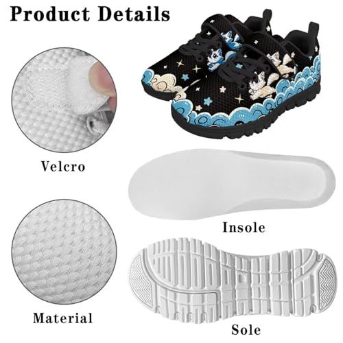 More information about Little Kid Boys Shoes Non Slip Lightweight Breathable Comfortable Sport Athletic Running Tennis Sneakers Moon Star Cartoon Cat Pattern