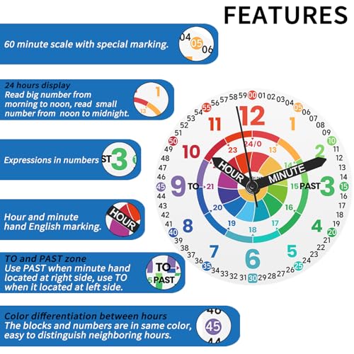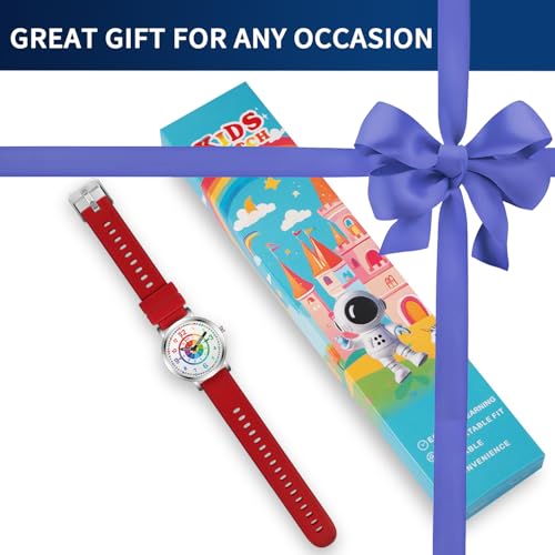 • EASY READ TIME LEARNING - Kids watch makes learn to tell the time more easier and funny. Colorful dial shows all minute numbers for children easier to read time. "HOUR" and "MINUTE" are labeled on Watch hands for accuracy.