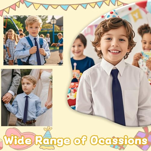 • Versatile Tie: The ties for kids can be worn with a wide range of children's clothing such as suits, shirts, tuxedos and more; Whether it's a suit for a formal occasion or a casual look, the kids tie can add a highlight