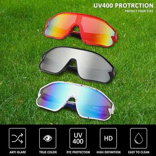 3 Pack Kids Baseball Sunglasses, UV400 Sports Shades for Boys & Girls, Running, Lightweight TR90 Frame 5