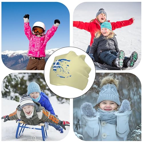 Greek Flag map Children Hip Hop Knitted Hat Kids Elastic Leisure Knit Cap Warm Sleep Beanies Black 5