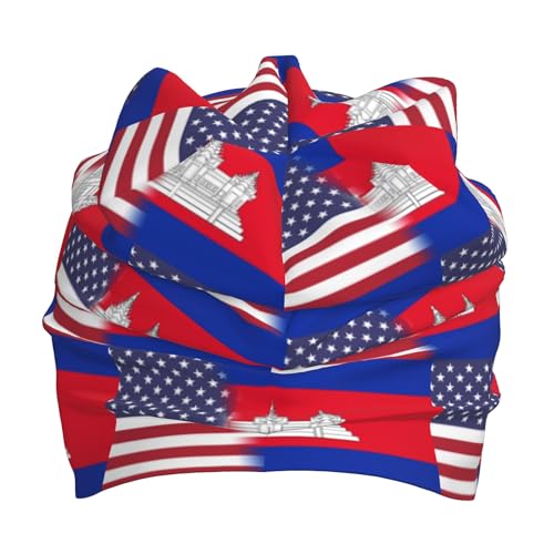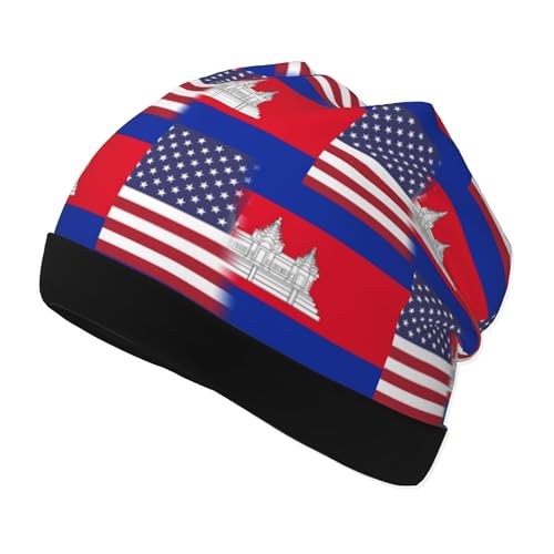American Flag and Cambodian-Flag Kids Leisure Elastic Knitted Hat Junior Large Size Knit Cap Child Beanie Black 2