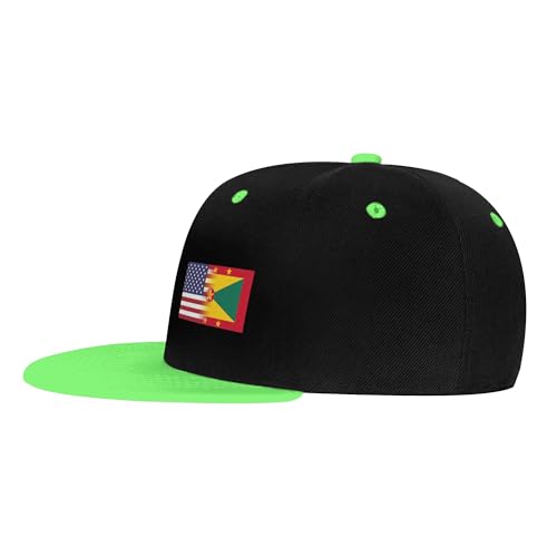 American Flag and Flag of Grenada Children's Flat Brimmed Hip-hop Hat Flat Eave Sunscreen Duckbill Cap Headgear 1