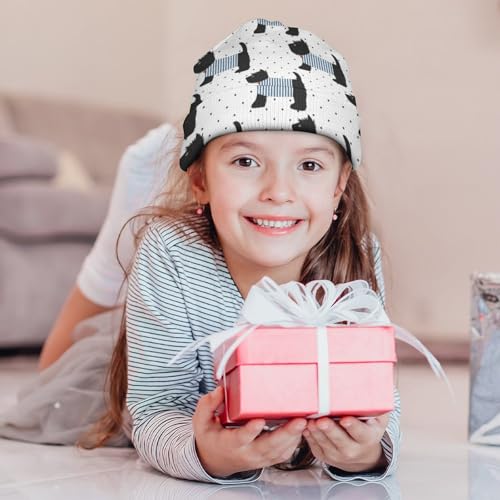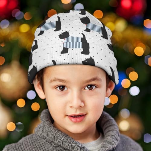 Cute Animal of Scottie Dog Pattern Kids Beanie Hat for for Girls Boys Children Cap Winter Knitted Chemo Cancer Headwear Accessories Gifts Decoration Black 7