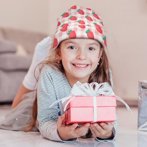 HOT ! Strawberries and Green Leaves Pattern Kids Beanie Hat for for Girls Boys Children Cap Winter Knitted Chemo Cancer Headwear Accessories Gifts Decoration