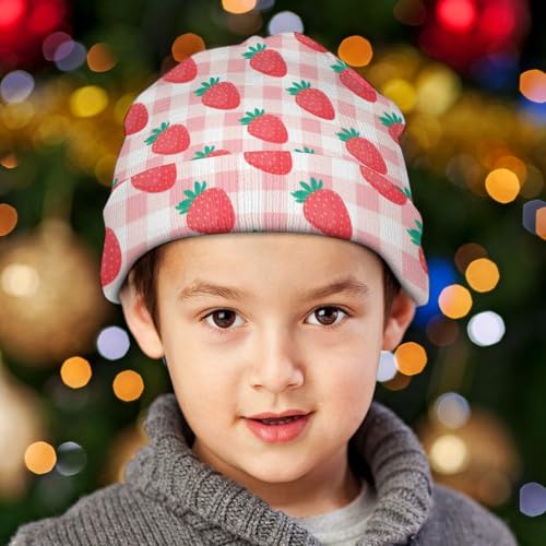 Strawberries and Green Leaves Pattern Kids Beanie Hat for for Girls Boys Children Cap Winter Knitted Chemo Cancer Headwear Accessories Gifts Decoration 7