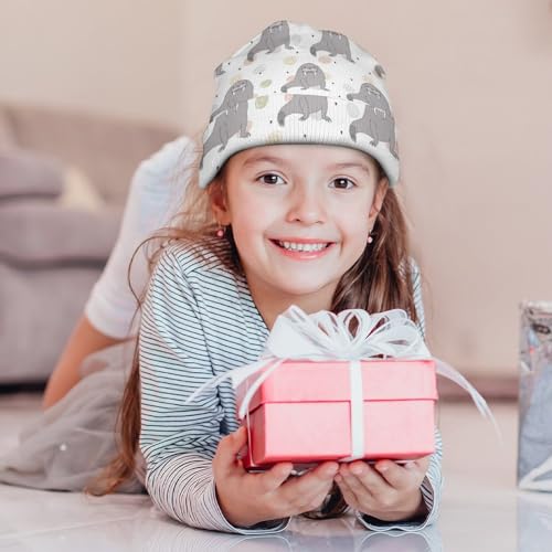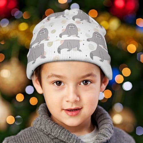 Seal and Walrus Pattern Kids Beanie Hat for for Girls Boys Children Cap Winter Knitted Chemo Cancer Headwear Accessories Gifts Decoration Black 7