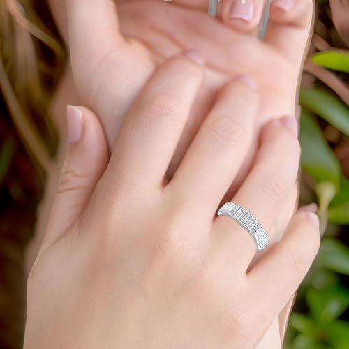 OMRANII Minimalist 5.4mm Full Eternity Band Baguette Cubic Zirconia Rings Curved Design Classic Style Statement Wedding Bands For Women 925 Sterling Silver Gift For Her 6