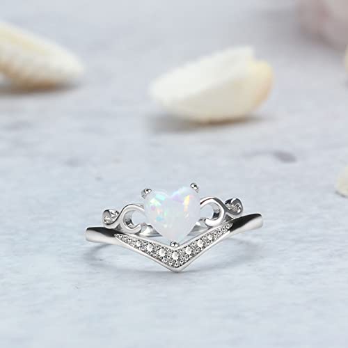 Heart Shaped Opal Ring for Women Bride Wedding Band Inlaid Zircon Anniversary Ring (Silver, 9) 6