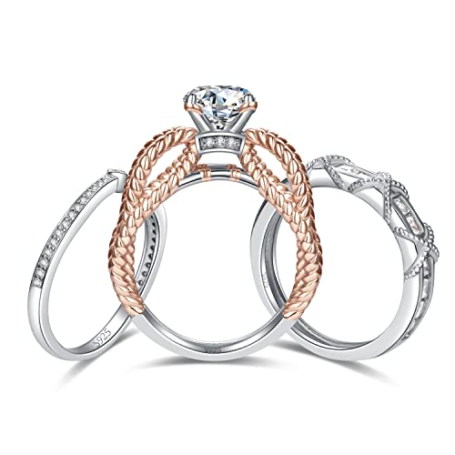 • √FIT ANY OCCASION: Add style to a basic look with these solid S925 ring for women. The unique 3pc art deco engagement wedding rings bridal set are finely crafted of gleaming 925 Sterling silver and are enhanced with a high polish finish. This ring set have 2ct main stone with prong setting to make it stronger and not easy to fall.Add style to a basic look with these solid S925 ring for women. Perfect for everyday wear for a statement-making look no matter the occasion.