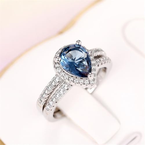2Pcs White Gold Plated Blue Cubic Zirconia Statement Ring Personalized Accessory Ideal for Women's Daily Casual Wear Party Holiday Anniversary Love Jewelry Gift 7