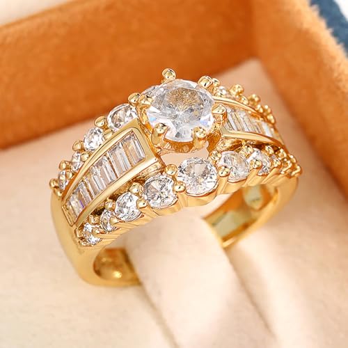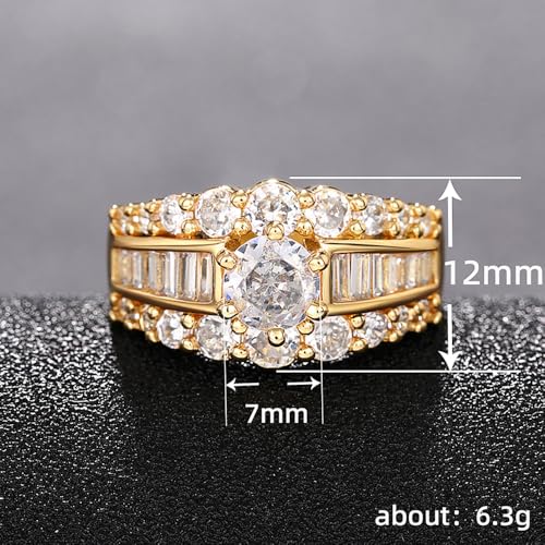 Luxury Lady Gold Color Wedding Bands Rings Fashion Brilliant Cubic Zirconia Accessories for Engagement 6