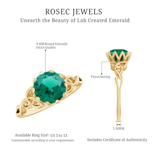 HOT ! Certified Lab Grown Emerald 8 mm Round Engagement Ring, AAAA Quality, Celtic Knot Ring (Ready to Gift)