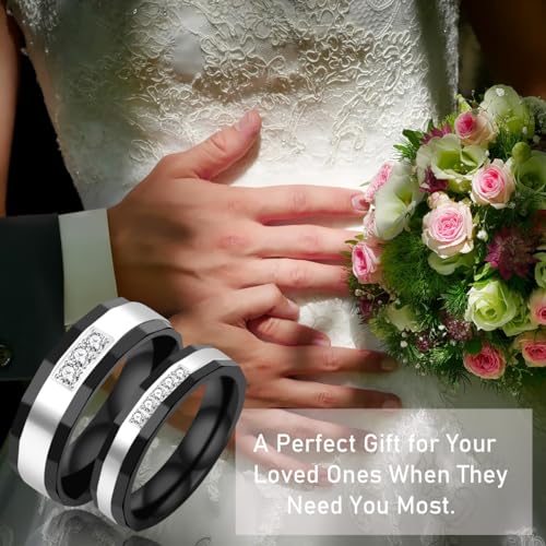 • ♥ Cool Design: The black stainless band ring has an unique design with brick pattern, and setting with AAA+ cubic zirconia stones, suitable as a wedding band, promise ring, engagement band ring, or couples ring.