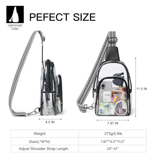 • [CLEAR BAG STADIUM APPROVED] This clear bag for stadium events measures 7.87 x 4.5 x 11.5 inches that meets most clear bag policies (APPROVED SIZE: 12x6x12 INCHES) such as football games, baseball game, single hockey, concert and college stadiums.