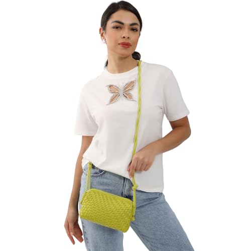 HOT ! Crossbody Bag for Women Trendy Woven Purse Vegan Leather Small Shoulder Handbags with Strap