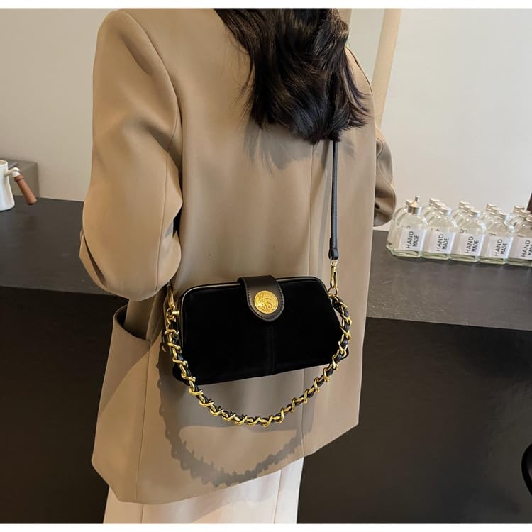 • Elegant Design: Crafted with a timeless chain-link strap and a luxurious suede exterior, this handbag exudes sophistication.Soft and comfortable fabric with your high-end hardware, is our high quality requirements.