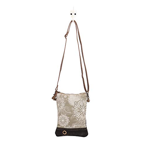 • {Lightweight Canvas Purse} This gorgeous Myra Women's Leafy Crossbody Bag is made of lightweight materials and features a lovely tan color with a floral print. It's constructed from premium leather and high-quality upcycled canvas, making it sturdy and stylish. You'll love its unique design and how comfortable it is to wear.