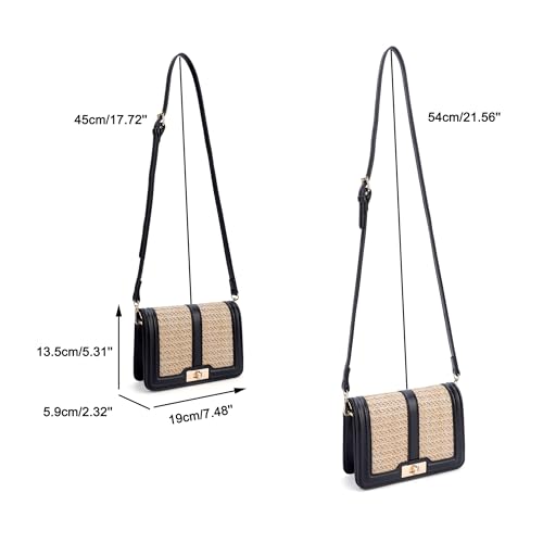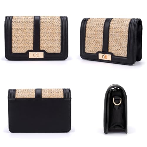 FALETO Straw Crossbody Bags for Women Summer Leather Stitching Straw Flap Bag Handbag Shoulder Clutch Purse 4