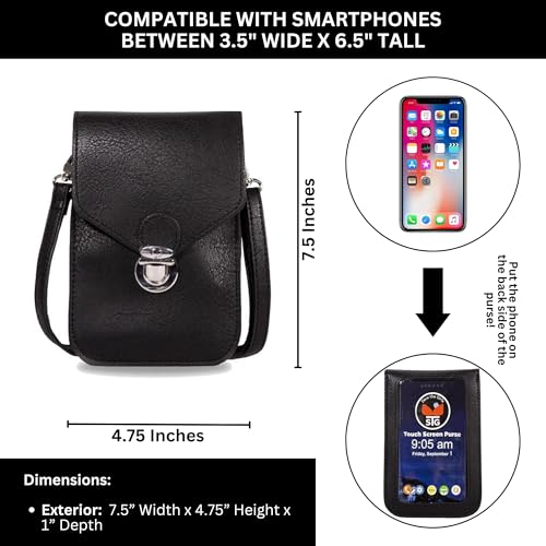 • FEATHERLIGHT DESIGN, UNIVERSAL SMARTPHONE FIT - Our cross-body bag is the epitome of convenience, crafted to fit most smartphones snugly within its secure touchscreen window compartment. Whether you’re team iPhone, Android, Galaxy, or Motorola, your device fits comfortably. Your smartphone stays safeguarded and perpetually within arm’s reach, ensuring you never miss a beat in your busy life. Embrace the ease of mobility with this essential accessory that complements your dynamic lifestyle.