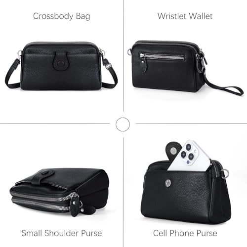 • VERSATILE CARRY PURSE - Zipper closure. Size: 7.7"x2.2"x5.1", shoulder strap length from 29.5-55.1". With 1*removable wristlet strap, 1*removable and adjustable single shoulder strap, this crossbody cellphone bag owns the functionality of a satchel, a single shoulder bag, a crossbody bag, a wristlet, or a clutch.