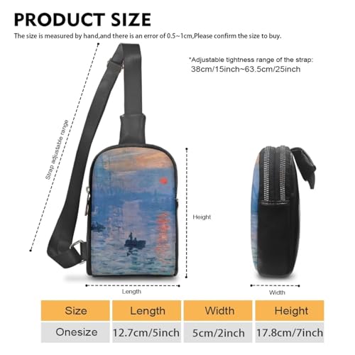 Impression Sunrise Print Crossbody Bag for Women Sling Bag Fanny Packs, Monet Painting Impressionism Art PU Leather Mini Messenger Bags Purse Backpack Travel Anti Theft 5