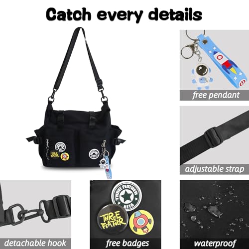 Teclado Fashion Crossbody Bag with Cute Accessories Casual Messenger Bag with Pendants Shoulder Bag Purse Travel Daypacks 5
