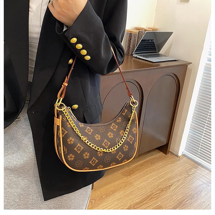 • Chic & Timeless Design – This crescent bag features an elegant brown monogram pattern with a luxurious gold-tone chain, adding a sophisticated touch to any outfit
