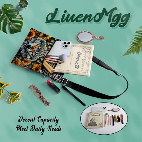 Sunflower Wolf Messenger Bag Small Ethnic Pattern Printed Adjustable Strap Crossbody Zipper Bag Sunflower Wolf Phone Bag Wallet Cute Shoulder Handbag for Women Friends 7