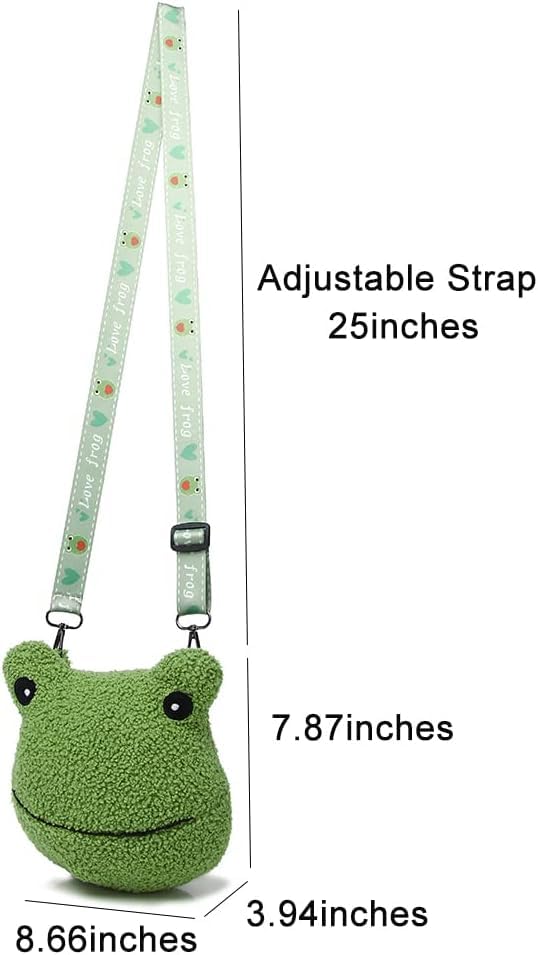 • Adjustable Crossbody Strap – Wear this plush frog bag as a shoulder bag or crossbody purse with its comfortable, adjustable strap, making it perfect for travel, shopping, and casual outings.