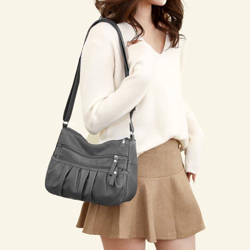 • DESIGN: This elegant and stylish women's satchel bag features a unique pleated design on the front of the bag for added sophistication, and a multi-pocket structure for a functional and practical all-in-one leather handbag that will complement any outfit in your wardrobe