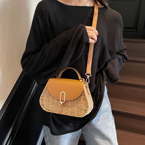 • "Retro Design: The straw crossbody bag features a oval shape, PU handles and a flap buckle closure, store your items safely and adds a touch of fashion to your spring and summer look"