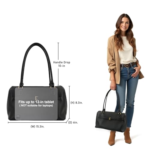 • 【Spacious Design with Smart Compartments】Generously sized at 15.3" L × 6" W × 8.3" H, with a handle drop of approx. 10", this leather tote weighs just 1.9 lbs and provides ample room for daily essentials. The magnetic snap closure opens to three compartments: a roomy main pocket for an 11" tablet, magazines, umbrella, sunhat, or cosmetics; a secure zippered pocket for valuables like wallets and IDs; and an open slip pocket ideal for frequently used items like your phone or transit card.