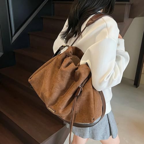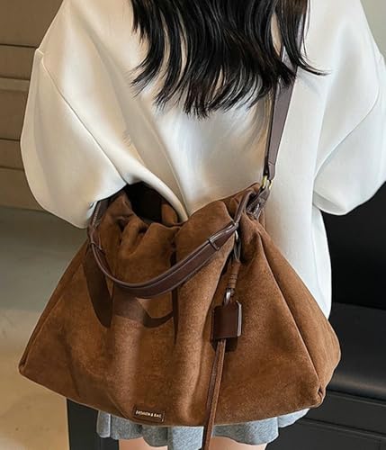 HOT ! Women's Retro Suede Bag Drawstring Crossbody Purse Faux Suede Shoulder Handbag Bucket Hobo Bag Fall Winter Satchel Tote Purse