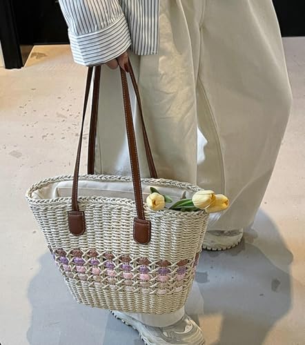 • Design: Stylish Woven Straw Tote Bags adds beauty to your outfit, easy to match with any summer beachwear like maxi dresses, pants, swimwear, bikini wraps and more