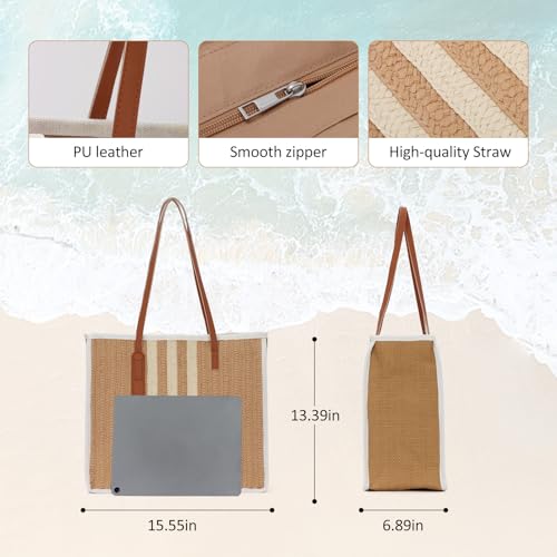 SUKUTU Large Straw Tote Bag for Women Summer Beach Weaving Chic Woven Shoulder Bag for Travel Vacation 5