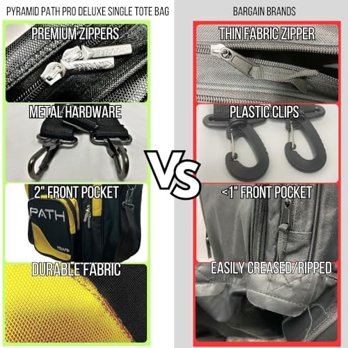 • Adjustable Padded Strap w/Welded Steel Construction, Webbed Nylon Carrying Handles, Custom Zipper Pulls, Polyurethane Ball Cup designed for comfort, utility and style - ( Pyramid Deluxe Bag Tag is not included )