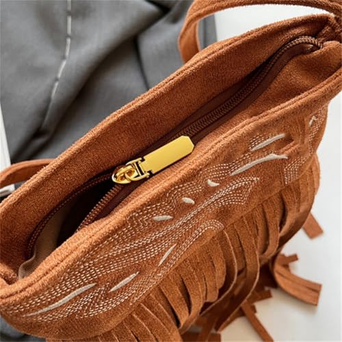 Women Suede Tote Bag Trendy Handbag Purse Fall Shoulder Fringe Hobo Bags Zipper Tassel Hippie Western Work 7