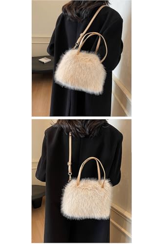 Ulisty Women Small Faux Fox Fur Tote Bag Mini Furry Top Handle Bag Plush Shoulder Bag Crossbody Bag Handbag 1