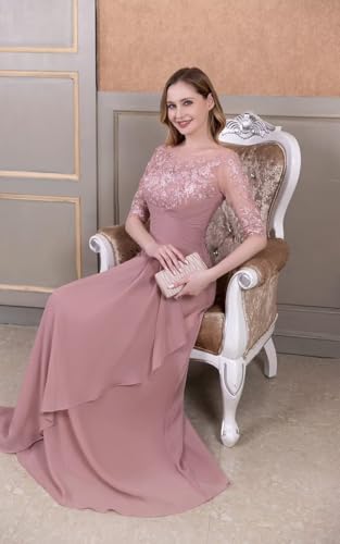 • [Features]:Laces Appliques Mother of the Bride Dress,3/4 Sleeve Mother of Groom Dress,Petite Dresses for Mother of the Groom,A Line Formal Evening Gowns,Chiffon, Scoop Neck,Classy Mother of Bride DressPleated/Ruched,Floor Length,Light Weight and Flowy,Soft, Skin-friendly,Built-In Bra.